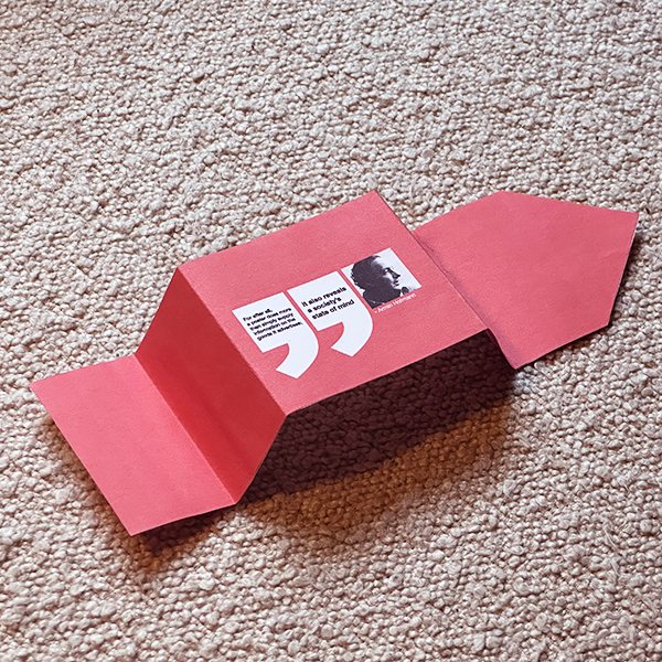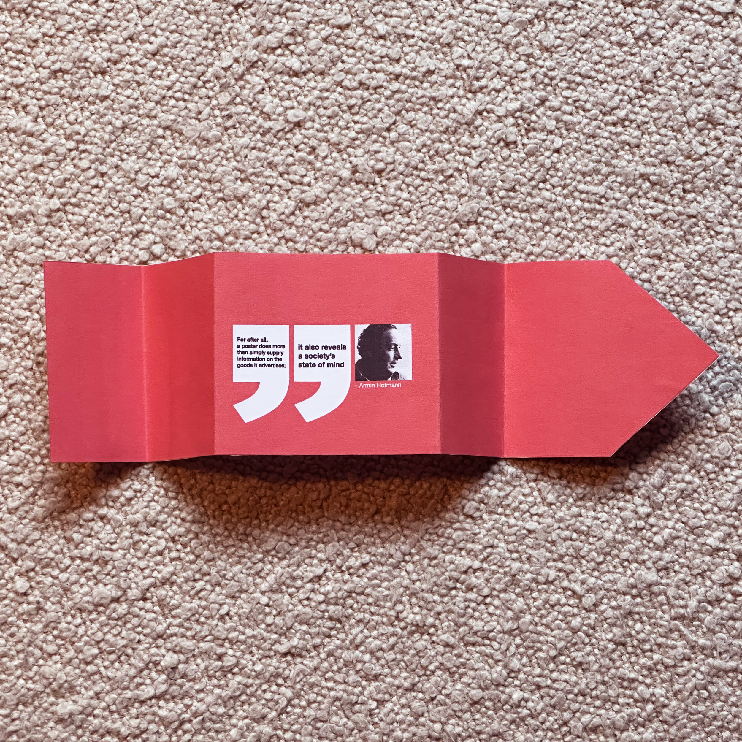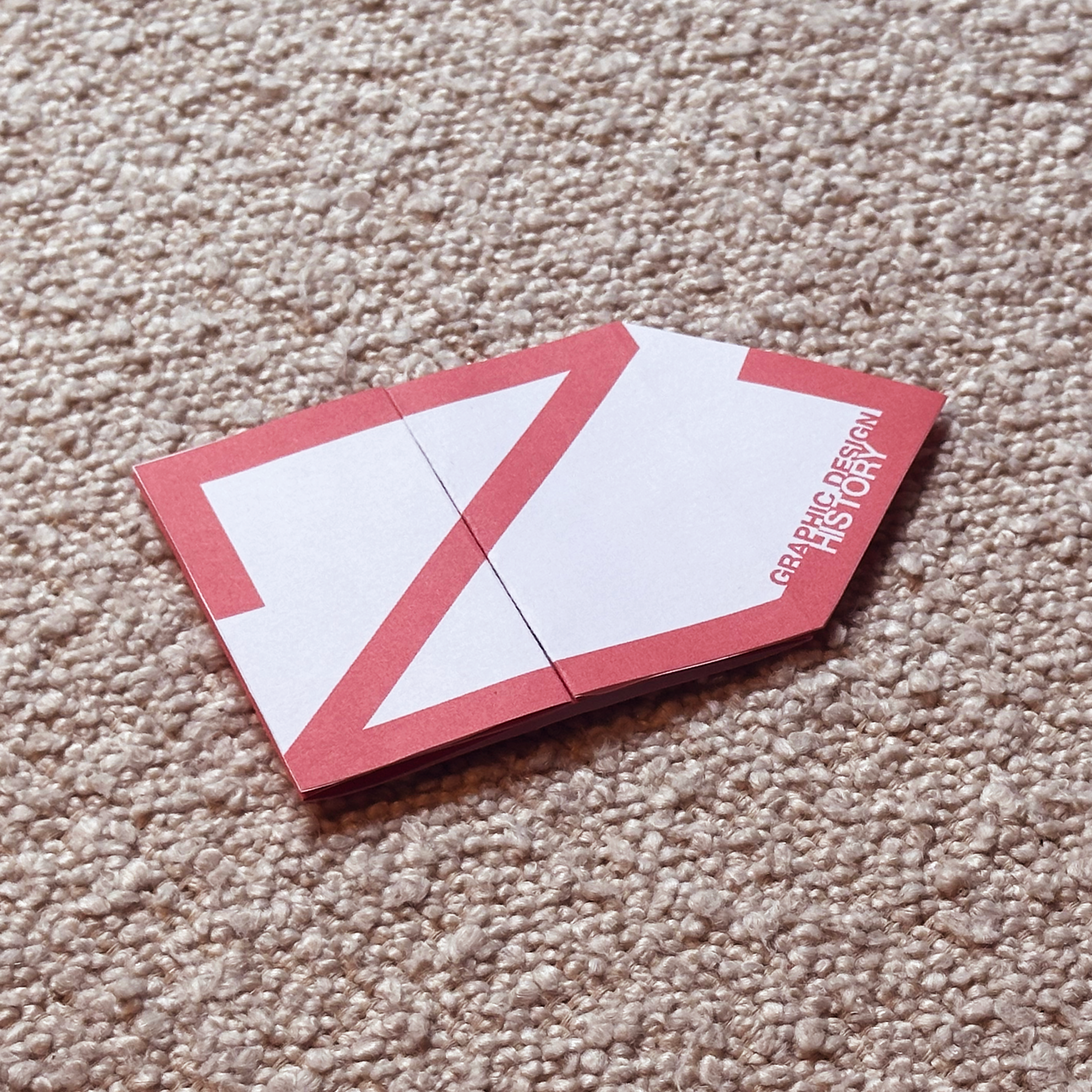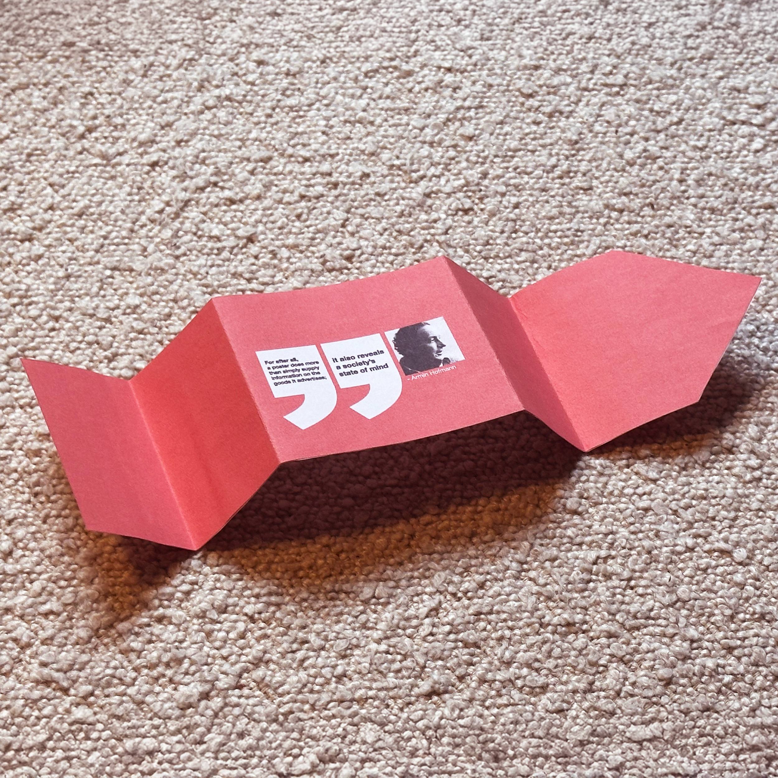 The leaflet is designed around the structure of the Noroff logo, unfolding to reveal the history of graphic design.